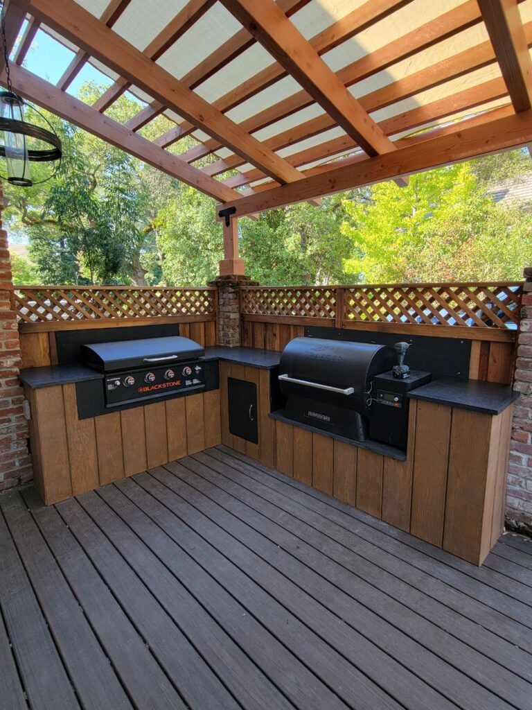 The customer designed a brand-new outdoor kitchen and wanted a stone that would pair perfectly with their recently purchased Blackstone equipment. They selected Black Mist Honed granite for its sleek, modern appeal and durability in an outdoor setting. The project was completed just in time for the family to host a weekend gathering, and the finished space provided both a functional cooking area and a stylish backdrop for entertaining. The result is an outdoor kitchen that balances performance and design, ready for countless get-togethers.